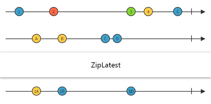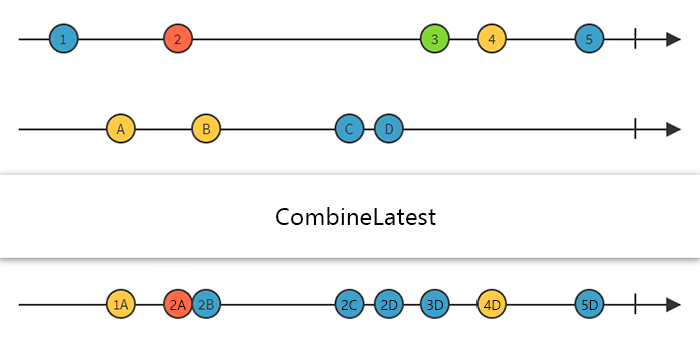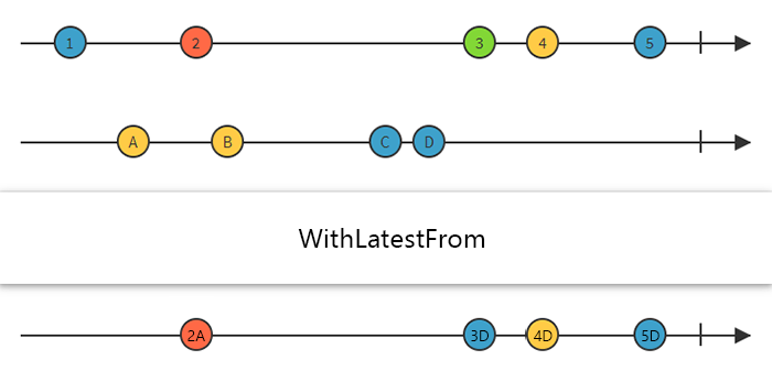 언듯 보면 CombineLatest와 같아 보이지만, 특징이 한 가지 있습니다. 그림을 보면서 살펴보도록 합시다.