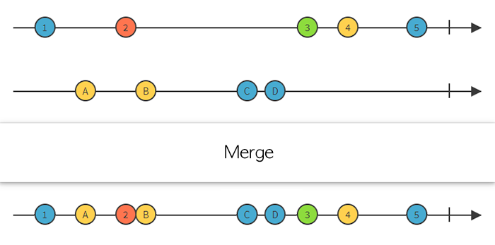 말 그대로 Observable을 합쳐줍니다. 그림으로 확인하면 다음과 같습니다.